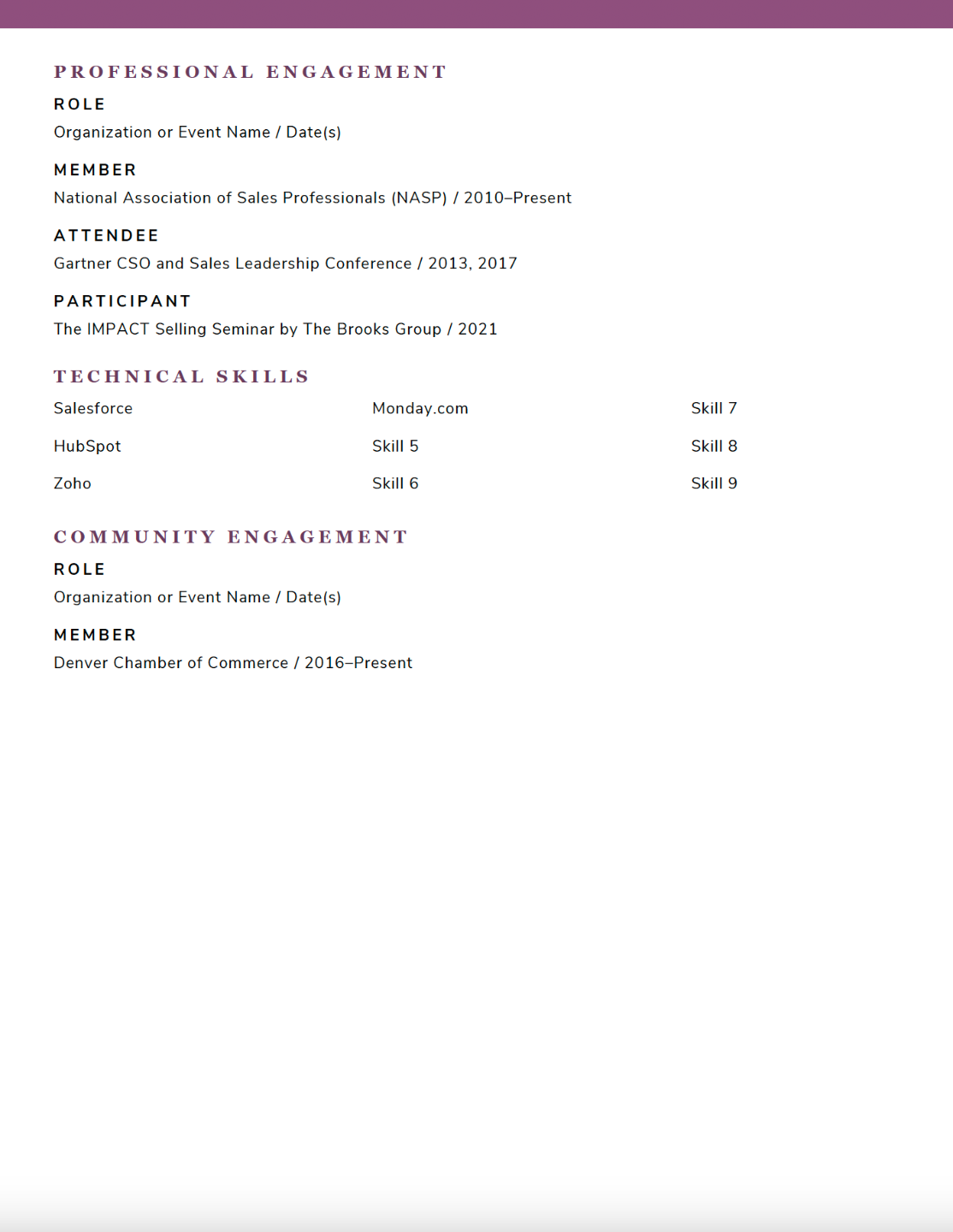 This is a simple template, which is generally most appropriate for straightforward, no‑frills presentation where clarity and ATS compliance matter most. For example: IT, Engineering, Manufacturing, Skilled Trades (electricians, plumbers, carpenters, etc.), Logistics & Warehousing, Transportation (truck drivers, delivery services, etc.), Customer Service, Retail, and Healthcare Support Roles (medical assistants, nursing aides, etc.). This is a non-exhaustive list, and you should feel free to choose a template style that feels right to you, your industry, and your role.