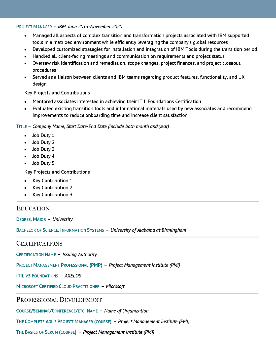 Resume Template: Transitional 001